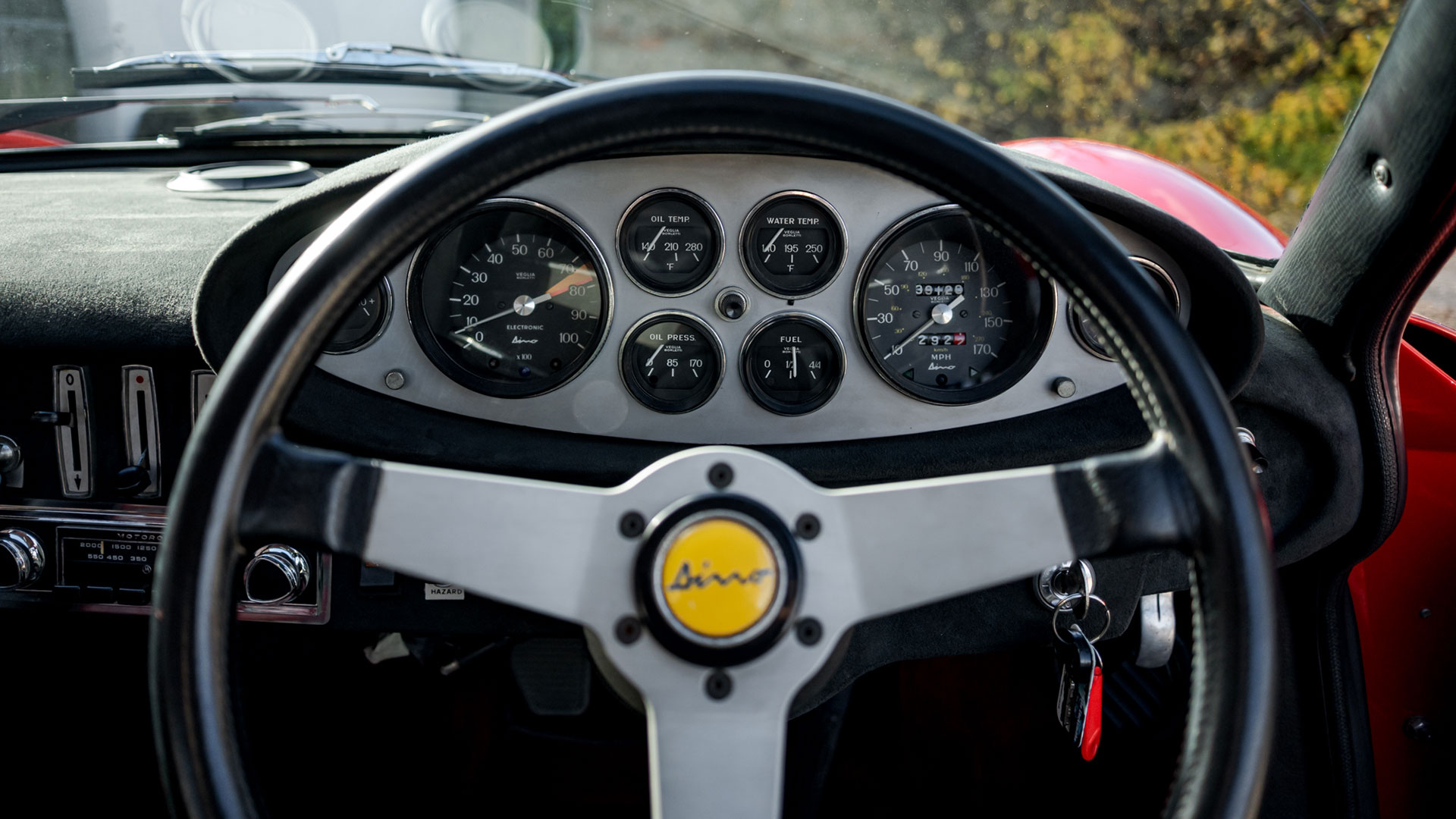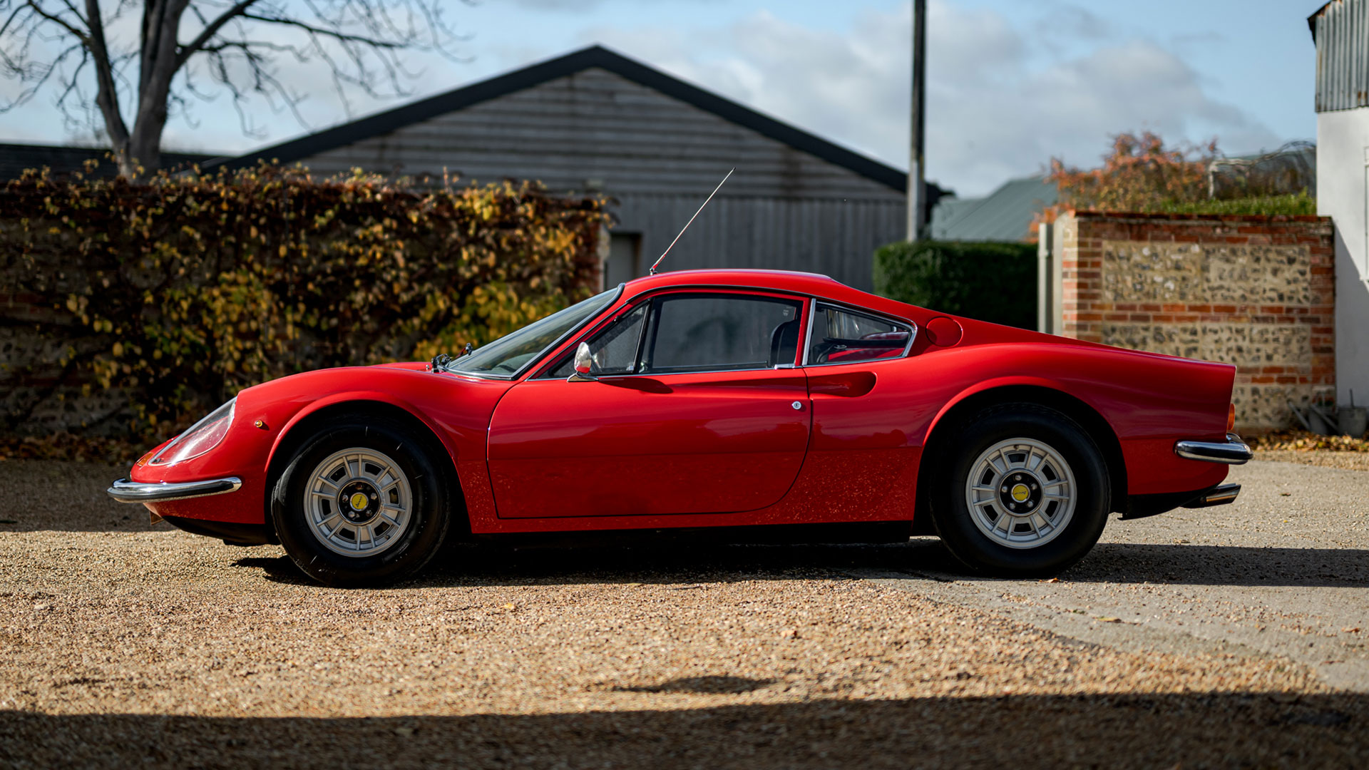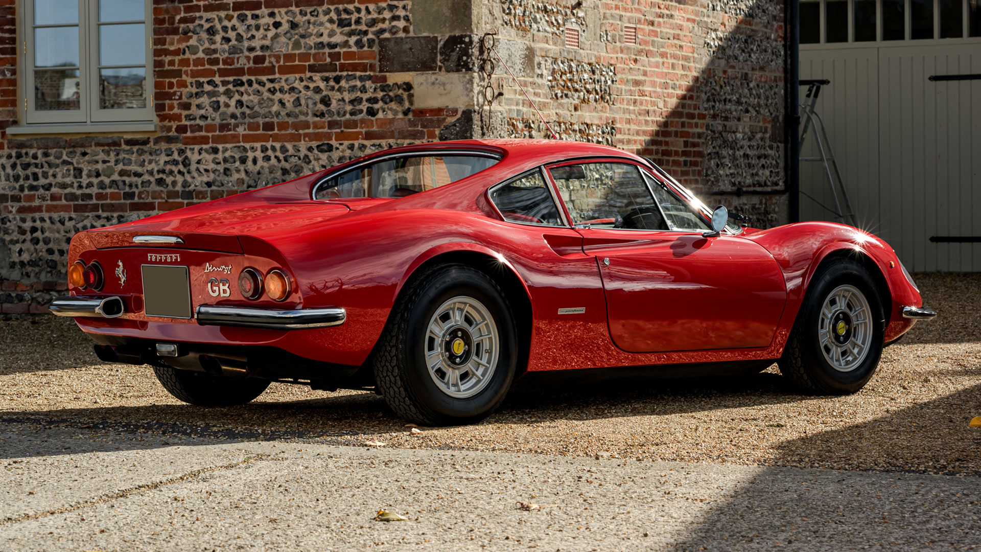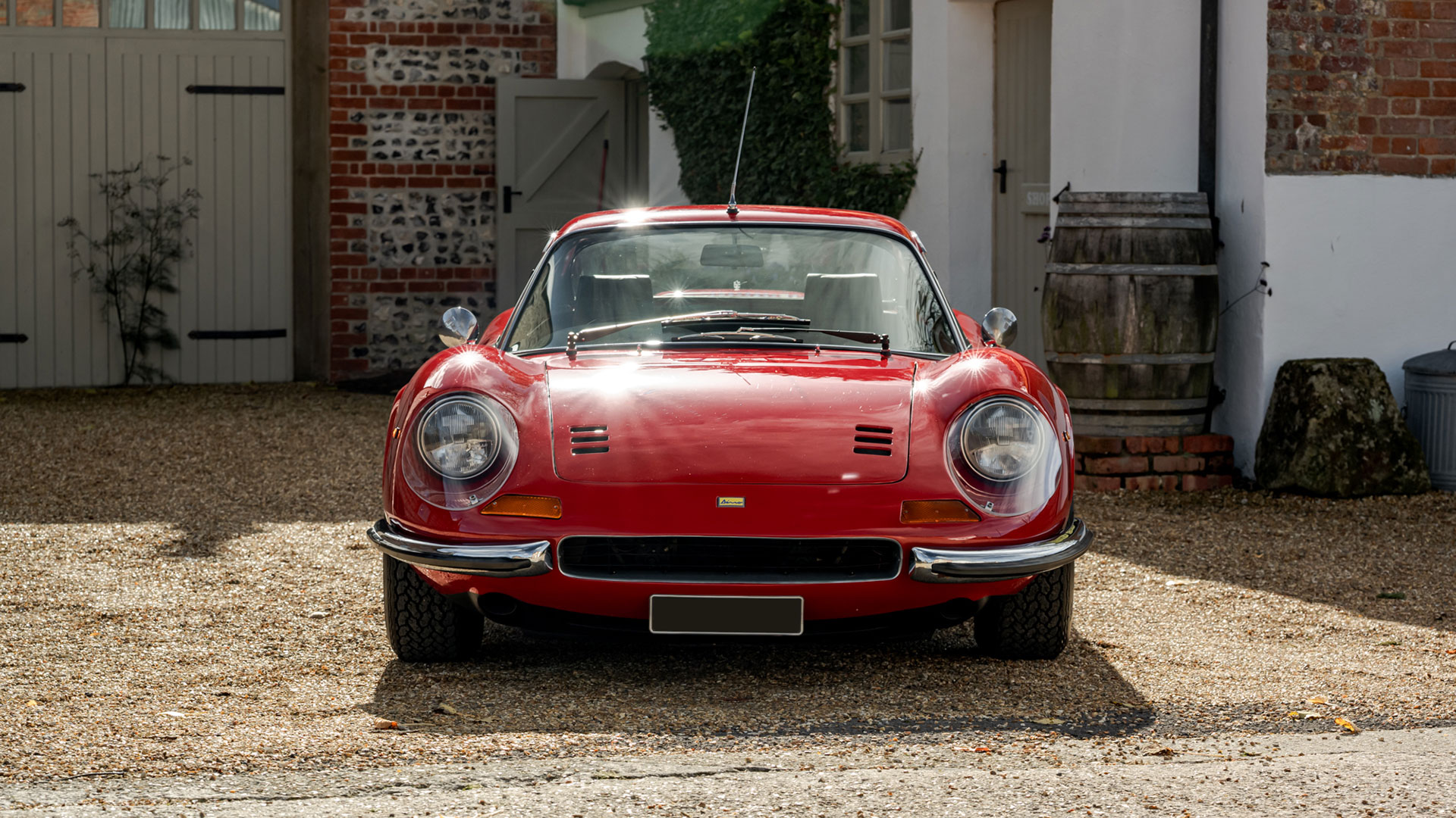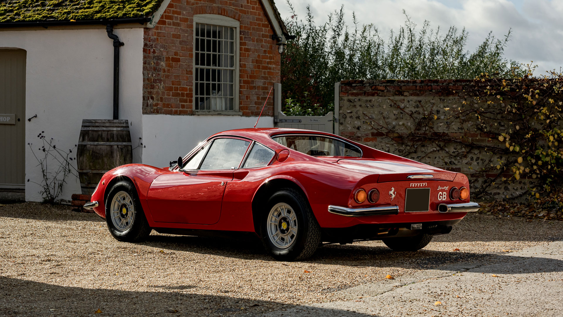 Ferrari 246 GT Dino Coupe, Chassis #03632, UK first delivered, RHD, presented in Rosso Corsa, Nero interior and black carpets. This car was completed by Ferrari S.p.A. on 20th March 1972 and supplied to Maranello Concessionaires Ltd Currently showing only 39,130 miles, Current V5 show’s seven previous owners. Recent works include service and restoration of shock absorbers and springs Comes with a large and very comprehensive history file to include many service invoices, receipts, historical MOT’s, Tax discs, copy of the original order, Tony Willis letter, toolkit and Jack. Presented in lovely condition.